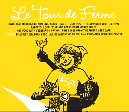 Le Tour de Ferme. Scarecrows were made then put on bicycles to celebrate the day of Le Grand Depart. 200 people witnessed The Blacksocks & friends provide an alternative to the glitz & glamour with a storming night in the cowshed