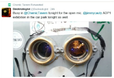 We again opened the show and set the bar high at the open mic night marking the arrival of James Cauty’s (ex KLF) Aftermath Dissolution Project. The Blacksocks, featuring Pete’s 1950’s Gibson Gold Top, created a soundscape befitting the occasion.